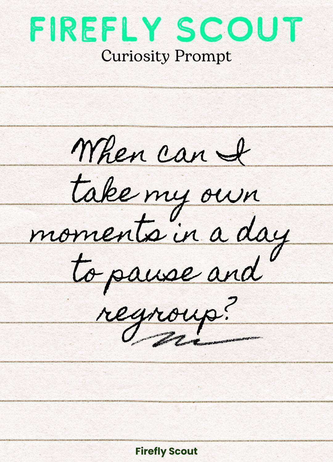 - Even if I feel like I can't say 'stop the world I want to get off', when can I take my own moments in a day to pause and regroup?