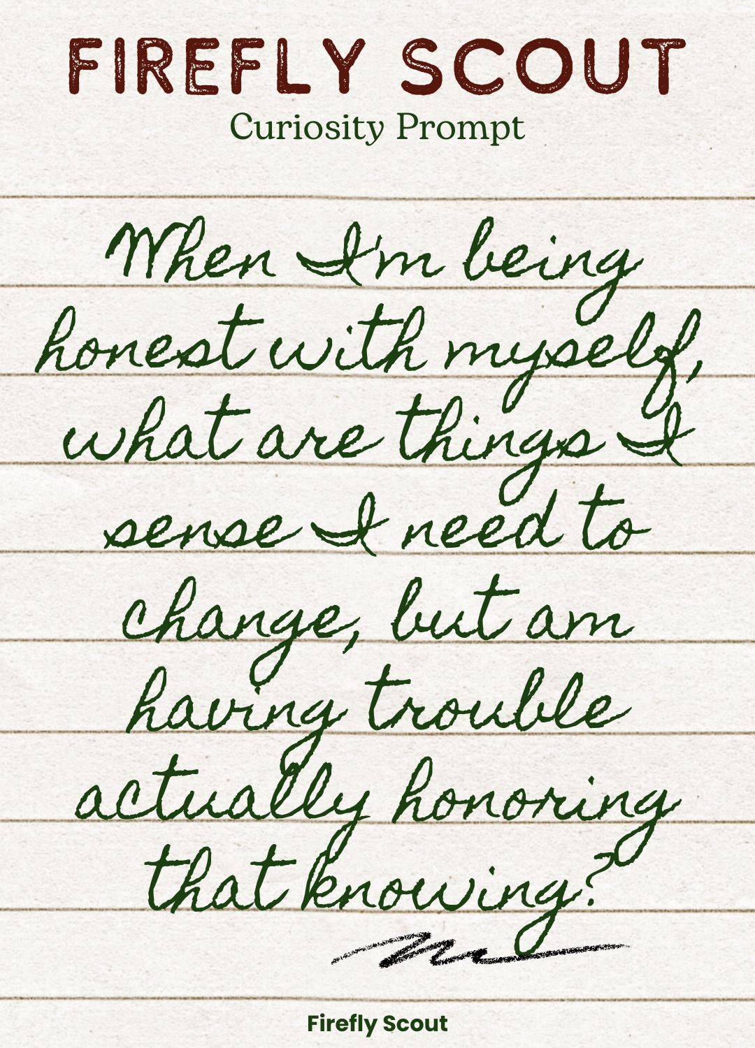 - When I'm being honest with myself, what are things I sense I need to change, but am having trouble actually honoring that knowing?