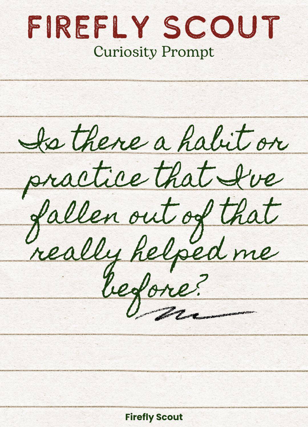 - Is there a habit or practice that I've fallen out of that really helped me before?